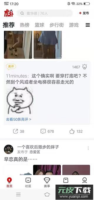 2、在首页查看近期体育新闻与用户发布的趣味内容;