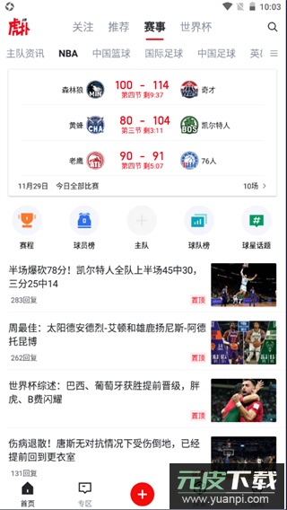 虎扑评分是一款广受欢迎的体育资讯应用,它以专业的篮球报道闻名,同时覆盖足球、电竞等多个运动领域。这里不仅有最新的赛事动态和深度分析,还设有活跃的论坛板块,吸引大量体育迷与知识爱好者聚集交流。应用内还提供直播、数据、竞猜等多种特色功能,致力于为用户呈现NBA、CBA、欧冠等全球赛事的精彩内容。