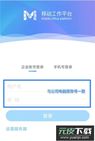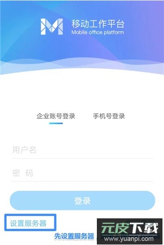 1、完成软件安装后进入登录界面,首先进行服务器配置,随后输入账号密码;点击“设置服务器”选项。