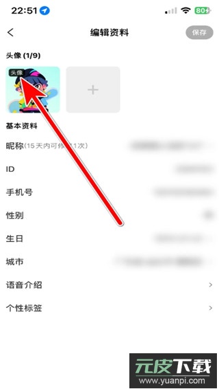 3、接着点击头像区域,从手机相册里选取喜欢的照片进行更换即可