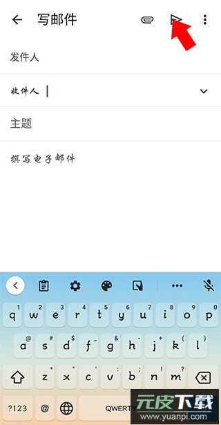 4、编辑完成后,点击右上角的纸飞机图标,你的邮件就会发送出去