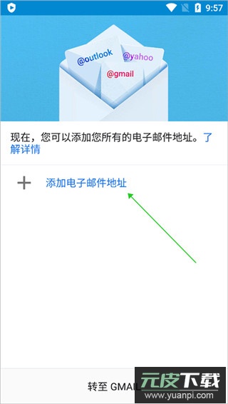 1、打开谷歌邮箱应用官方版,进入首页后点击【添加电子邮件地址】;