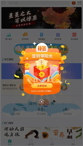 签到入口位于软件主界面右上角,每日可签到一次,每次签到可获得数量不等的阳光值,该阳光值具有多种用途,后续将具体介绍;