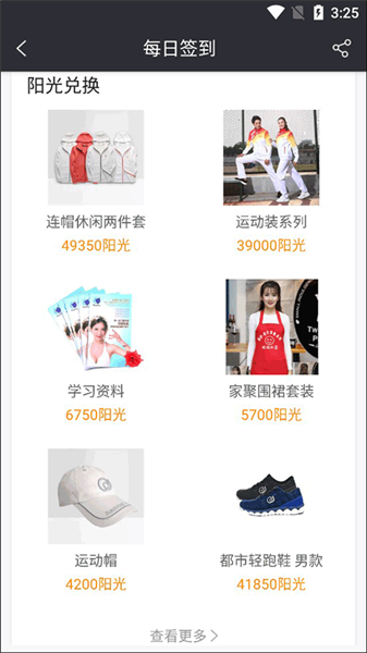 前文提到了阳光这一虚拟道具,它既可用于补签,也能在兑换商城中换取实物礼品,甚至包括知名品牌运动装备,只要积累足够的阳光值即可兑换。
