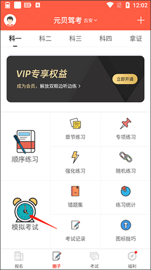 1、打开软件后,点击模拟考试入口;