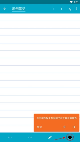 点击调色板即可为当前选中的书写工具设置笔触颜色。
