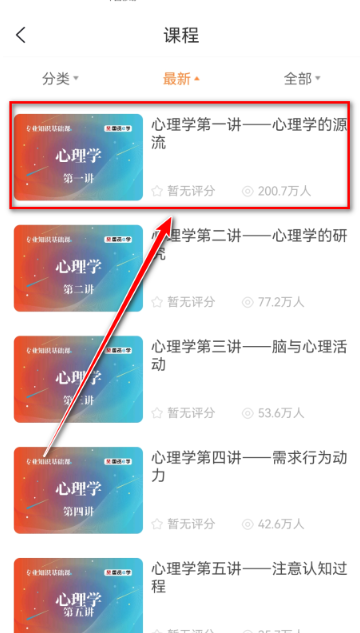 2、在课程分类中选择需要学习的课程,点击想要观看的具体视频。