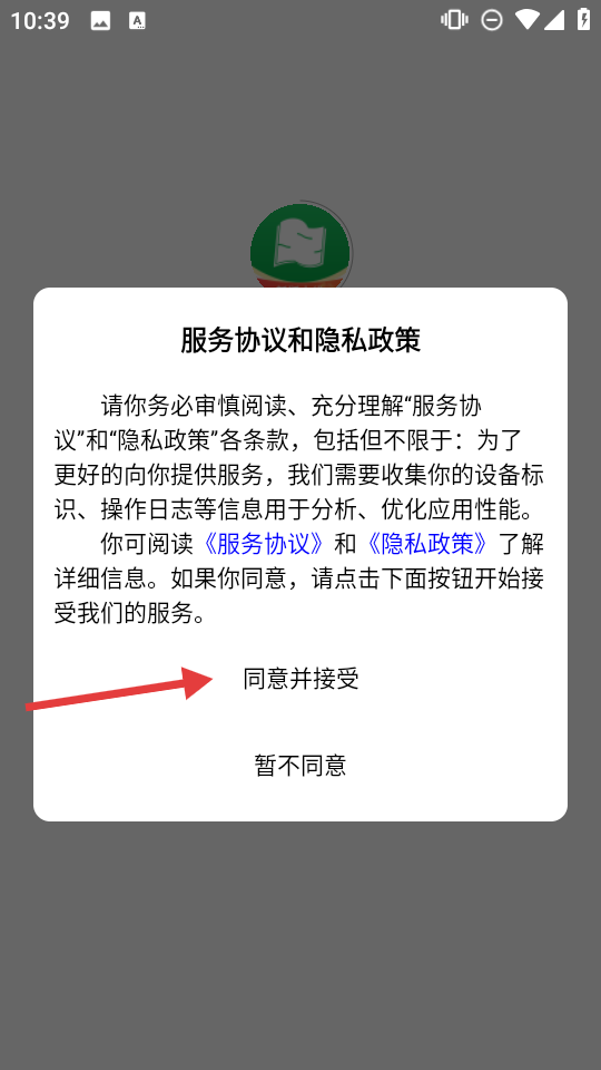 1、阅读服务协议和隐私政策,点击同意并接受,进入高考服务应用。