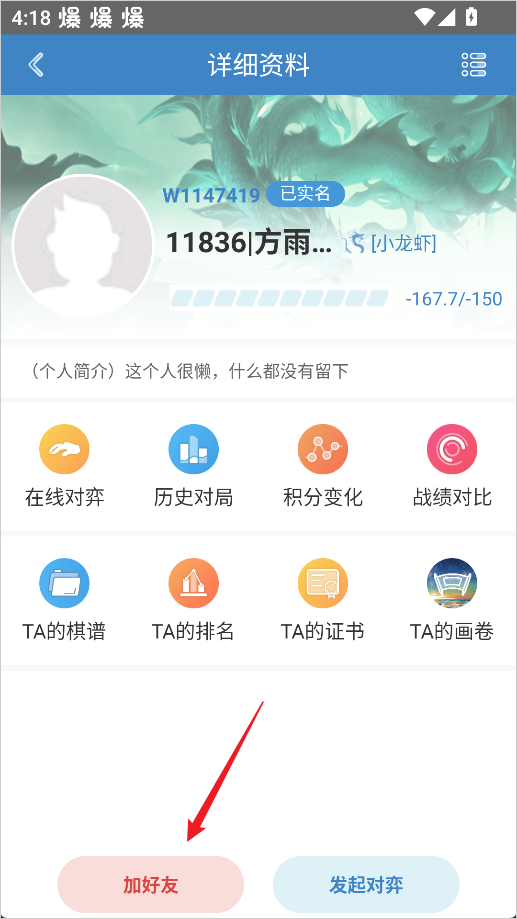 5、点击下方的【添加】按键,发送申请;待对方确认后,即可成功建立好友关系。