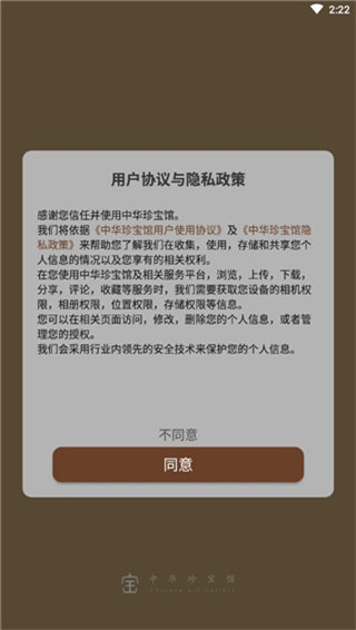 1、首先在本站下载中华珍宝馆app,点击打开后同意相关用户协议;