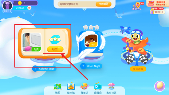 2、找到主页面上标有GO的按钮,点击即可启动点读学习流程;