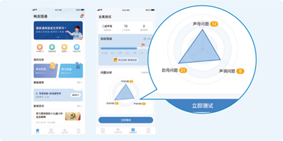 畅言国通利用经教育部鉴定的国家普通话水平测试同源评测技术,为区域主管部门提供智能化学习解决方案;帮助教师实现个性化精准学习,满足统一考核、集中培训及大数据监管等需求。