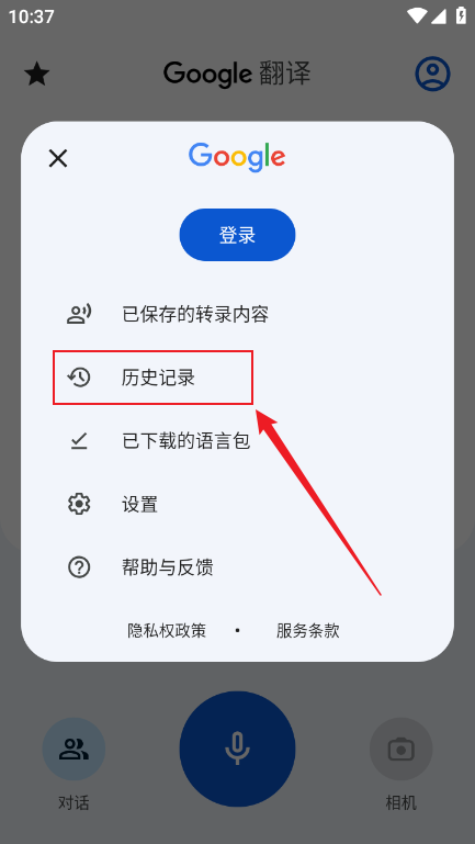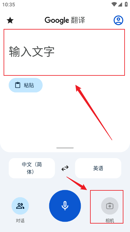 1、打开谷歌翻译app,你可以直接在输入框里键入要翻译的文本,也可以拍摄对应照片完成翻译;