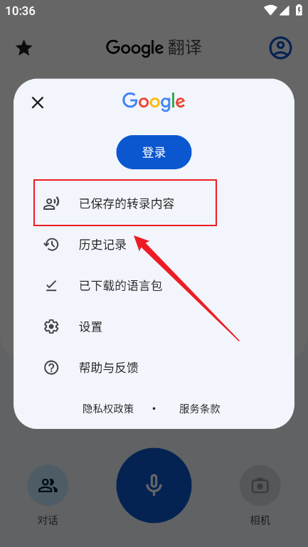 2.你只需要打开手机上的Google翻译,点击相机图标后把镜头对准要翻译的文本,就能直接在屏幕上看到两种语言的实时转换结果,该功能全程不需要连接网络,也不会消耗手机流量。