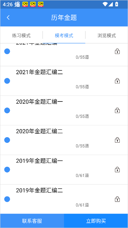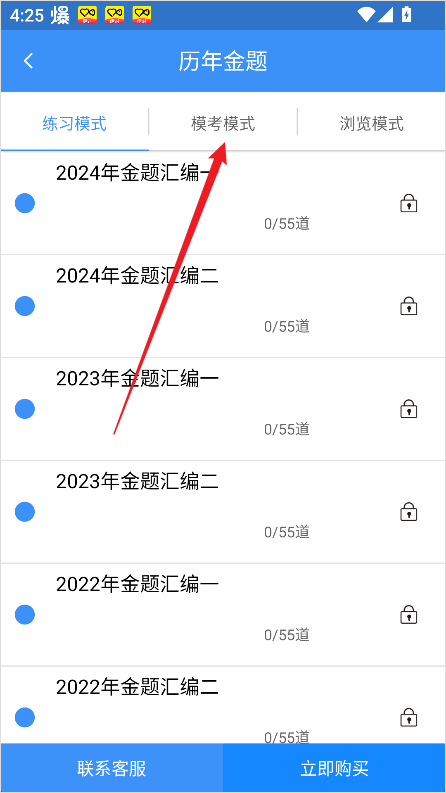 3、进入后,点击上方的【模考模式】选项。