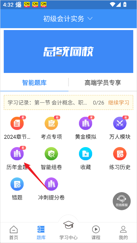 2、在题库页面中找到并点击【历年金题】。