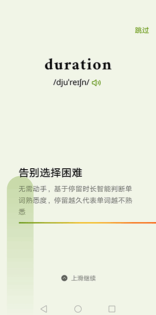 2. 无需手动标记,系统根据停留时长智能判断单词熟悉度,停留越久代表越不熟悉。