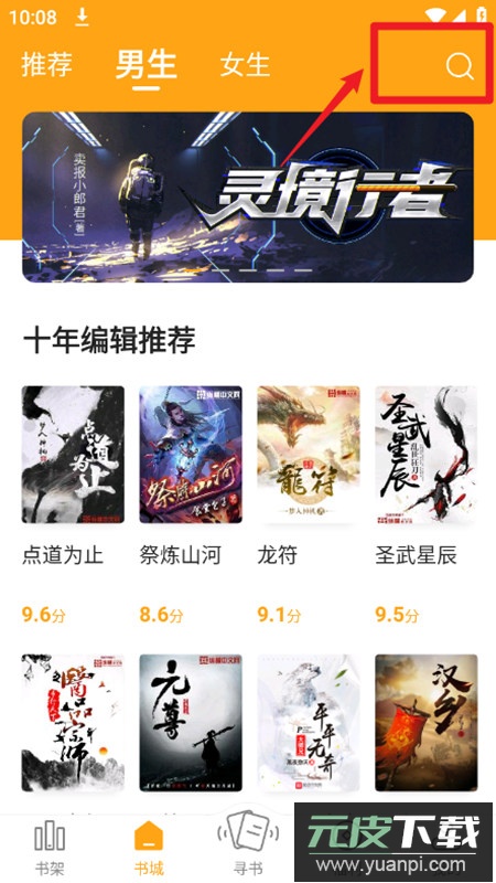 1. 打开笔趣阁app,进入主界面之后,点击右上角的搜索图标;