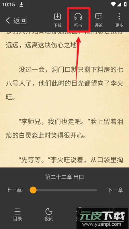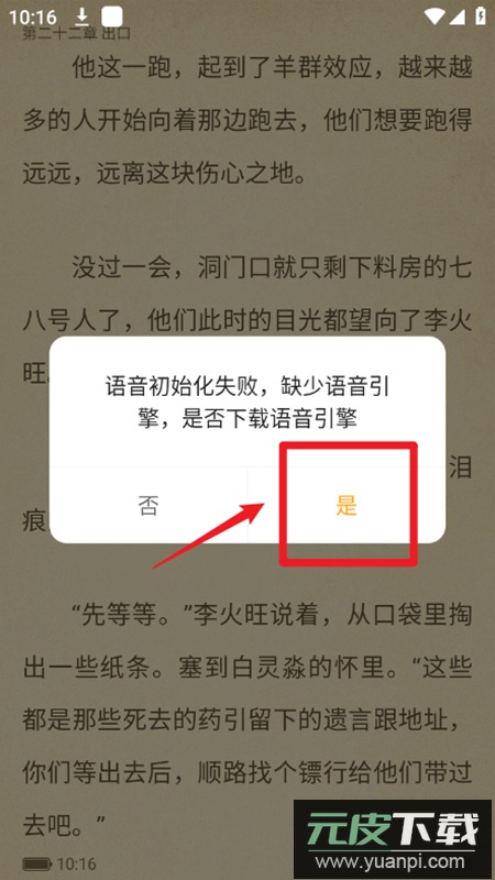 3. 首次使用听书功能需要先下载语音引擎,弹出提示框后点击【是】即可启动下载;