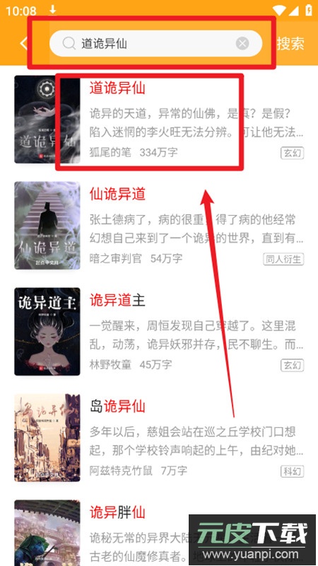 3. 点击对应搜索结果进入小说详情主页,找到右下角的下载标识点击即可;