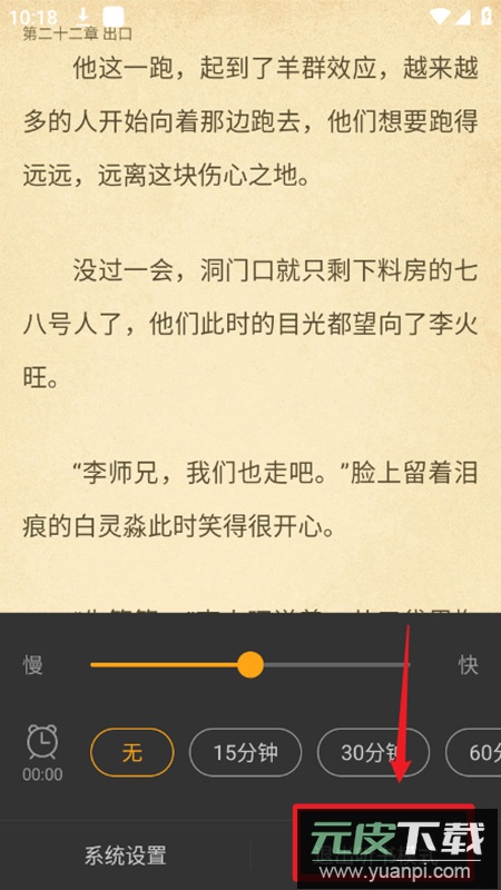 4. 语音引擎下载完成后就可以正常使用听书功能了,你可以自由调整播报语速,也可以设置定时关闭时间,不想继续听书点击右下角的退出按钮就能关闭听书模式。