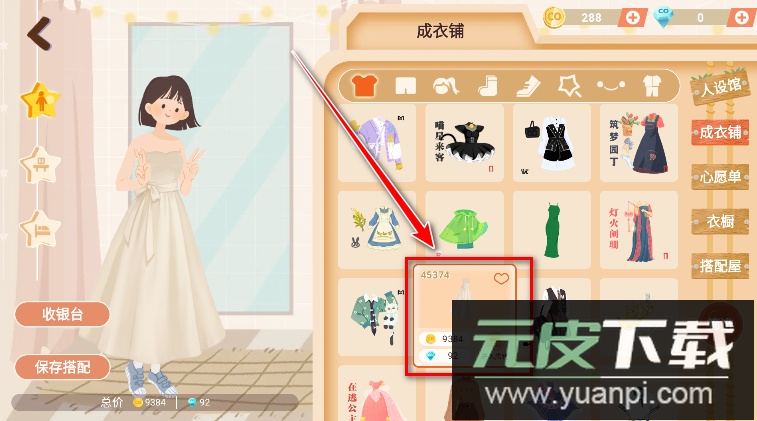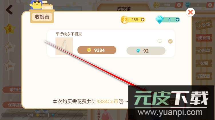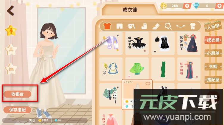4. 选定服装后,点击界面中的“收银台”按钮进入购买流程。