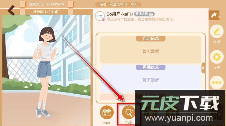 2. 在个人页面中,找到并点击“形象”功能选项。