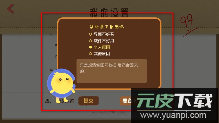 8. 勾选注销账号的具体原因,点击提交按钮,账号即注销成功。