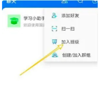 2. 在弹出选项中选择加入班级功能,通过输入班级码进行查找;