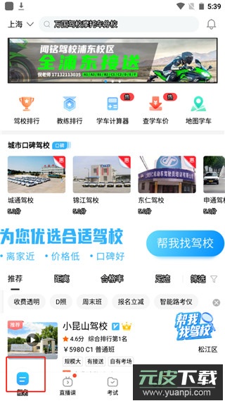 3. 进入首页后,若选择未报驾校,系统会为用户推荐附近的驾校信息。