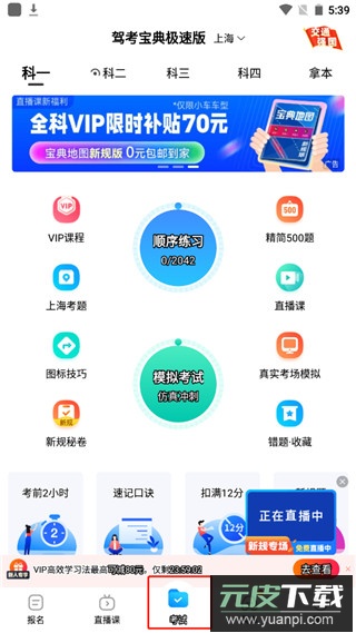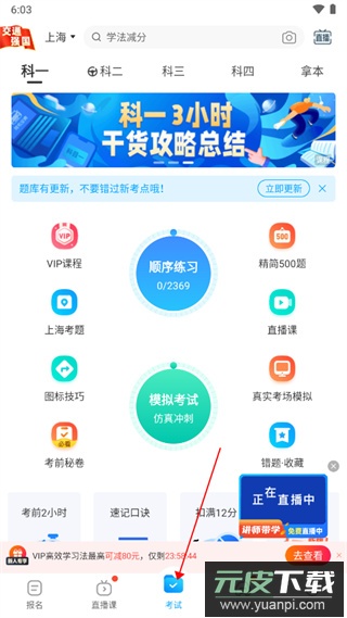 1. 打开软件,将底部导航栏切换至“考试”页面。