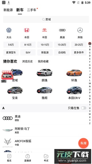 6. 点击买车板块,软件会提供丰富的车型与价格信息供用户参考。