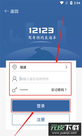 3. 此时需要登录,选择报名驾考时所在的省份,并输入查询人的身份证号及交管12123的账户密码。