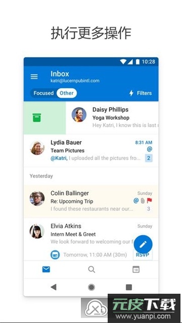 2025版手机端outlook国际版是微软推出的官方国际版邮箱APK,整体界面走清爽简约路线,没有冗余的功能弹窗和广告推送,所有收发邮件的传输数据都会经过多层严格加密,日常管理各类邮件的效率更高,运行全程稳定流畅,普通个人用户和商务办公用户都可以放心下载使用。