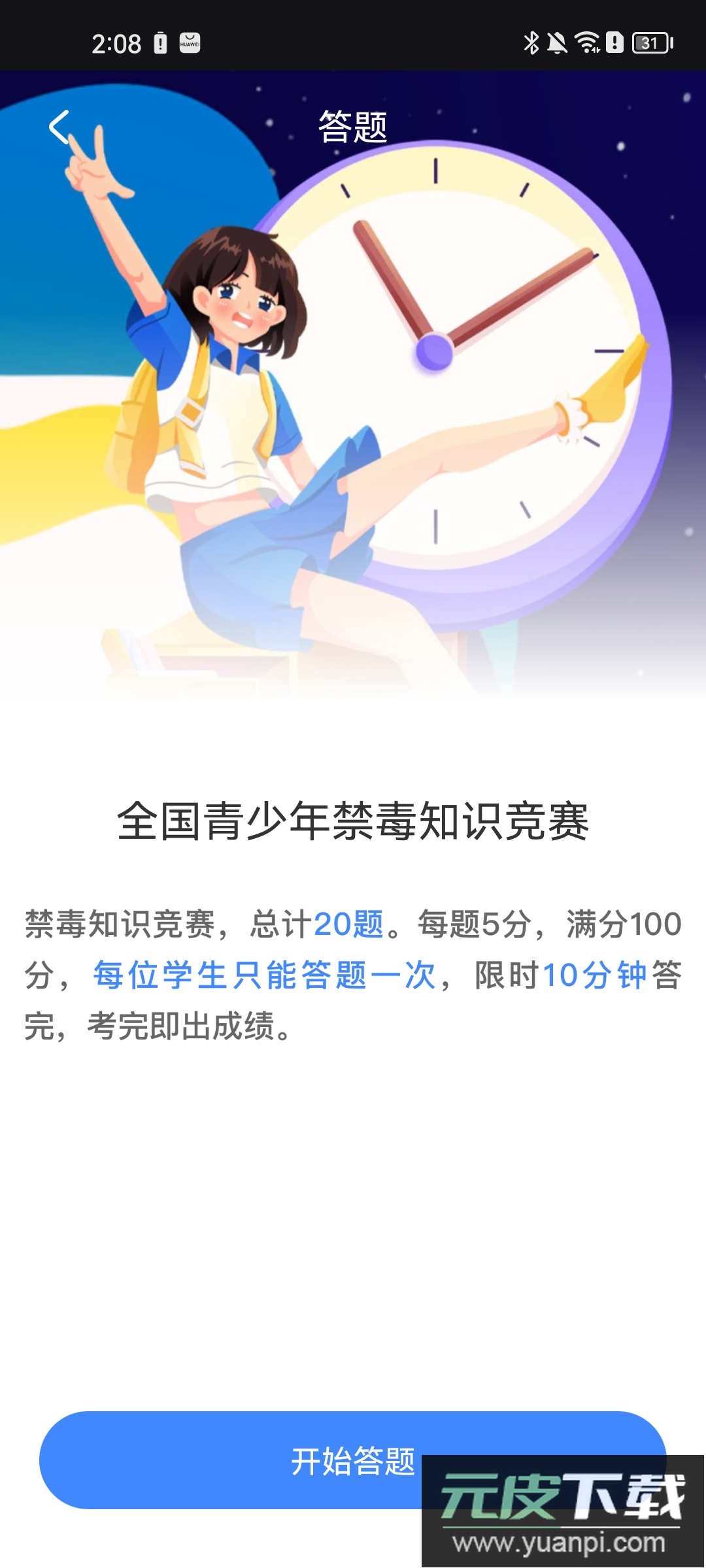 ① 在学习主界面中,点击页面上方的答题入口。