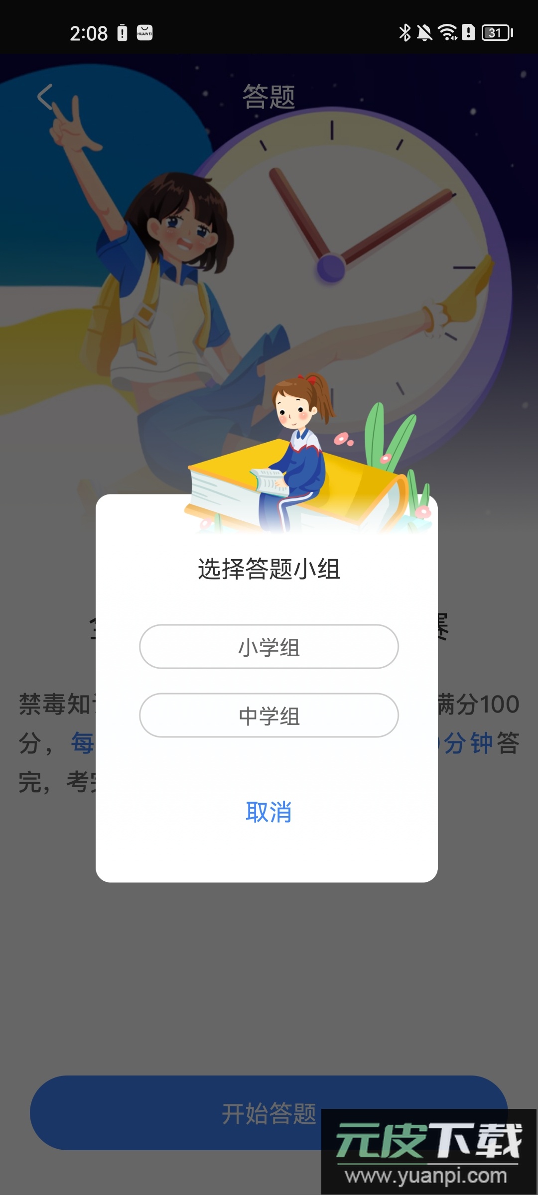 ② 根据自身情况选择对应的答题组别,例如小学组或中学组。