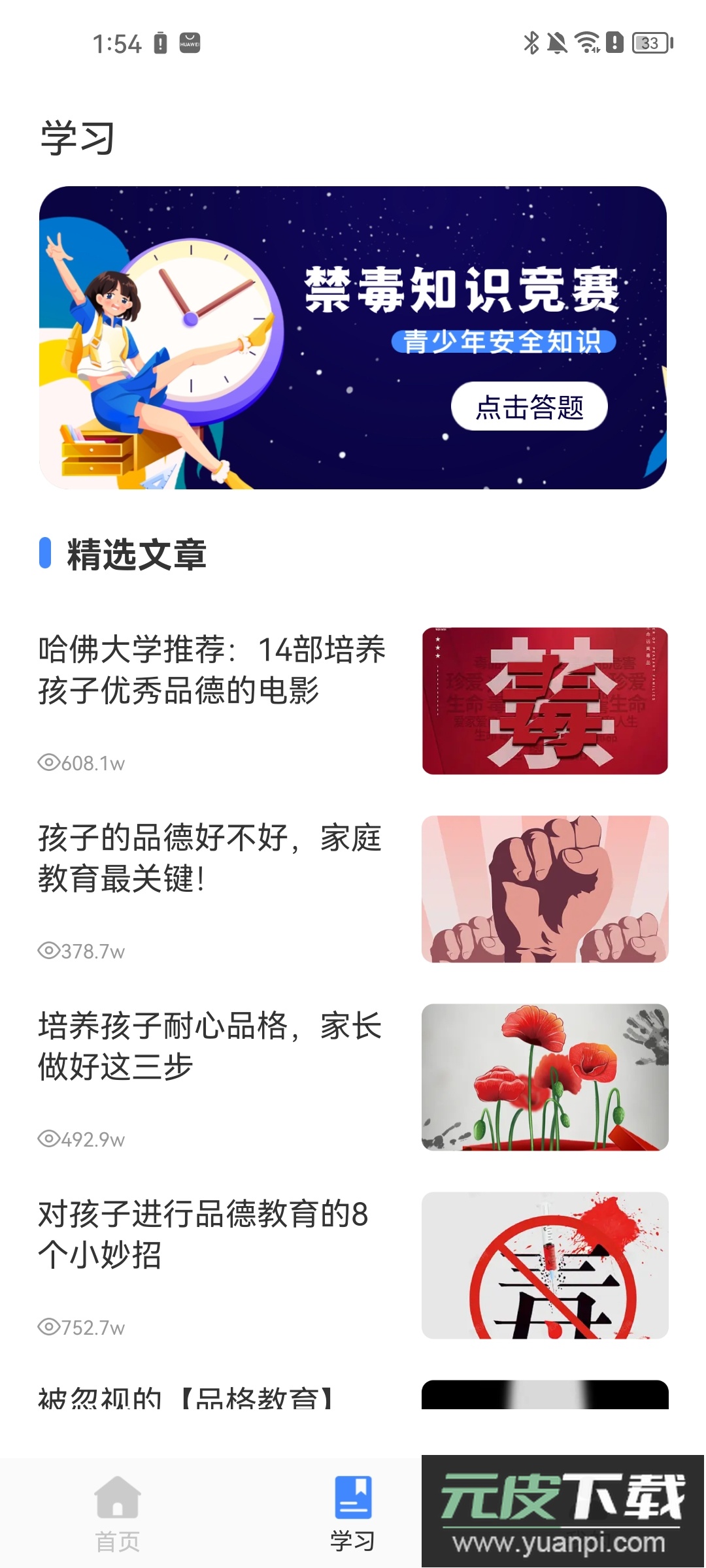 2. 进入学习模块,可以浏览精选的高关注度文章,每篇内容均经过筛选;