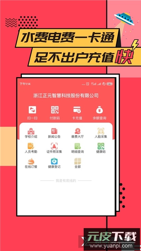 1、电子校园卡扫码支付功能,每位在校用户都能生成专属电子校园卡,大家可以持这张卡在校内食堂、合作银行及周边签约商铺完成消费付款,不用再随身携带实体卡片;