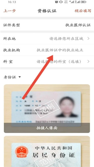 在展开的页面中,如实填写【执业医师信息】,提交完成认证即可。