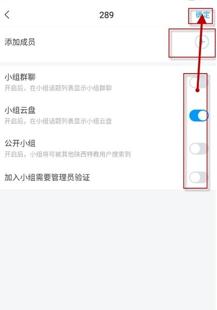 选择需要添加的小组成员,完成简单设置后,点击确定建立小组;