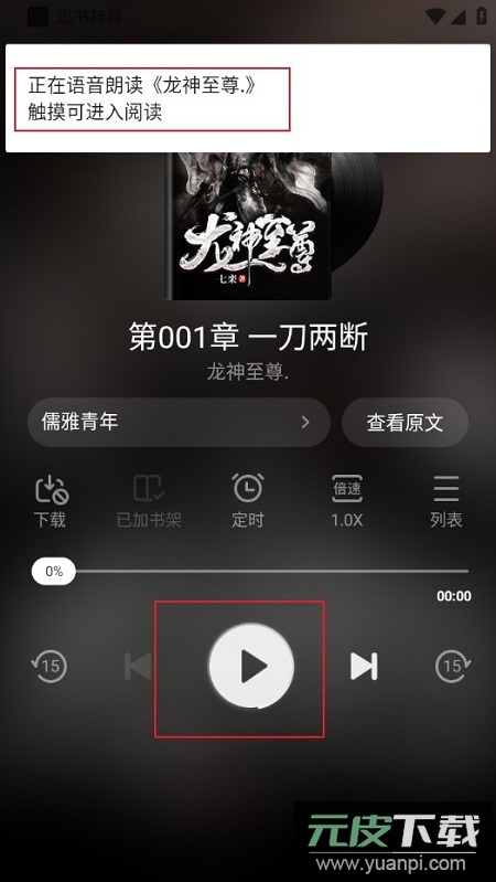4. 进入听书界面后,页面会提示正在进行语音朗读,你就可以正式开始听书了;
