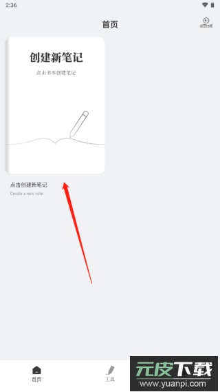 1、下载并打开应用,点击“创建新笔记”开始;