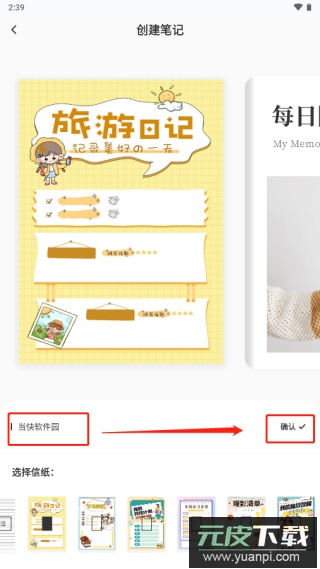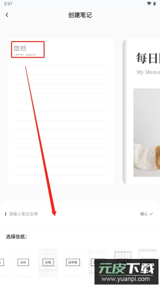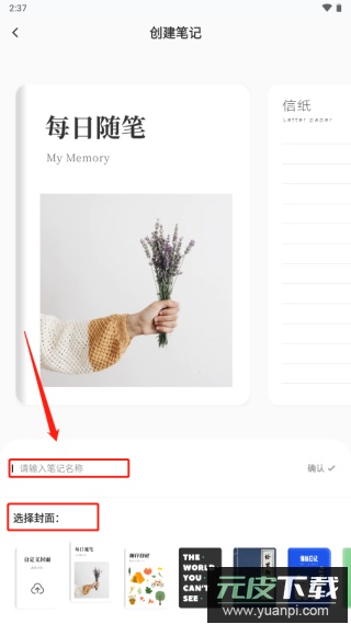 2、为笔记命名,并挑选喜欢的封面样式;