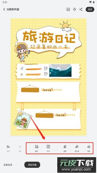 6、通过底部工具栏插入图片、输入文字或使用画笔工具;