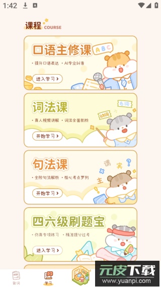 2、首页呈现多种功能模块,用户可根据个人习惯选择适合的单词记忆模式。