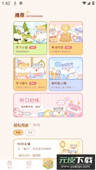 奶酪单词是一款融合学习与养成元素的趣味背单词应用。该软件把单词记忆和宠物养育、家居布置等轻松玩法相结合,为用户构建了一个高效且充满成就感的英语学习空间。软件完全免费使用,无广告打扰,界面风格可爱清新,功能多样实用,受到不同年龄用户的欢迎。它提供丰富的词汇库,包括小学、初中、高中、大学四六级、考研、托福、雅思、托业、计算机、BEC、SAT、GRE、GMAT等多种类别,适应不同学习阶段与考试要求。用户可依据自身目标选择合适词书,例如四六级高频词、雅思核心词等。软件配备单词拼写测试功能,针对重点难点词汇逐步巩固;支持原生例句跟读,让用户能在语境中记忆单词,并通过跟读模仿锻炼听说能力。