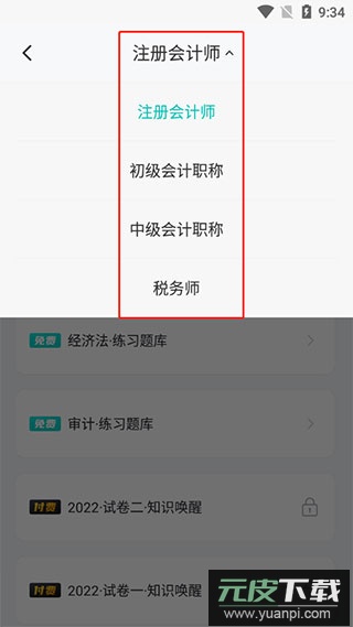 3、选定专业方向后,进入题型选择界面,用户可挑选免费或付费题目进行练习,也支持通过
