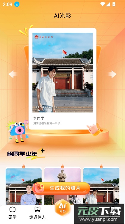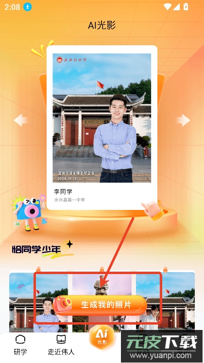 按照提示上传个人照片,系统便会自动制作出专属的研学纪念图片。