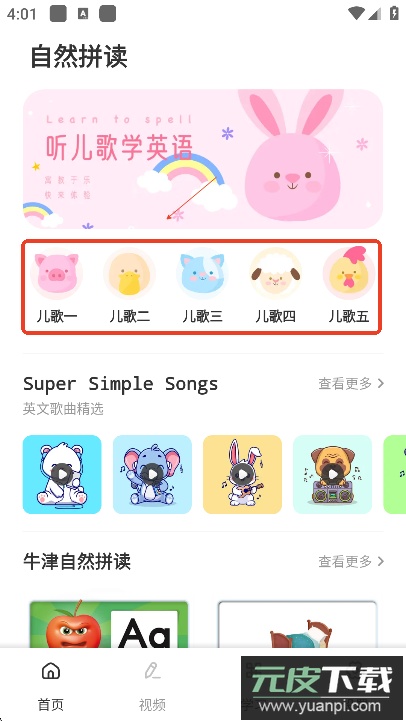 2. 儿歌与动画专区:收录Super Simple Songs、牛津自然拼读儿歌等资源,让用户在轻松氛围中培养学习兴趣。