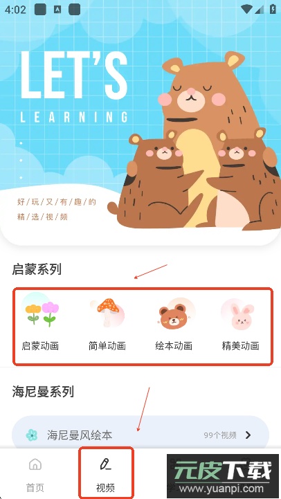孩子们还能在视频专区观看动画视频,以生动形式接触英语。